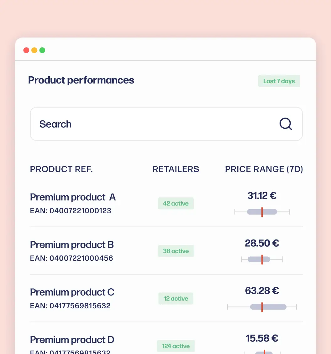 Track your prices and detect unauthorized promotions or price gaps compared to the competition.